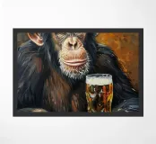 chimpanzee beer glass animal mammal primate drink human-like beverage pub bar tavern frothy alcohol wildlife hand fur eyes ears realistic