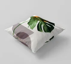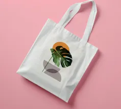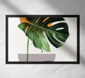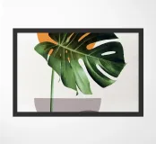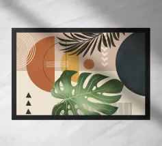 monstera leaf botanical graphic shapes orange circle geometric forms leaf silhouette plant life natural element tropical theme green foliage design composition half circles minimal elements modern design nature focus decorative plant simple background overlapping shapes stylized leaf clean lines