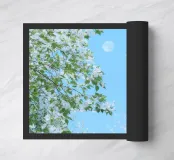Surrounded by a blanket of stars, it glimmers gently, sometimes veiled by drifting clouds. Whether full and bright or a delicate crescent, the moon brings a sense of calm and wonder, illuminating the darkness with its serene light. The sky around it is deep and vast, painted in shades of midnight blue and scattered with twinkling lights that seem to whisper ancient secrets."