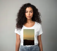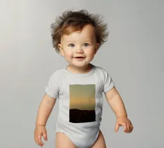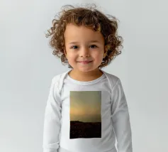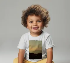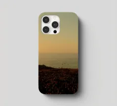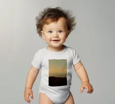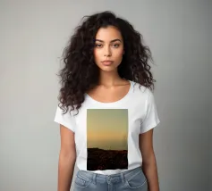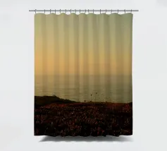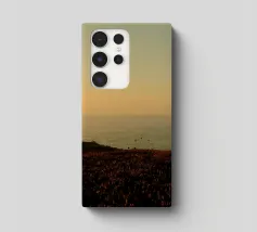 Golden light spills across the waves, blending into shades of orange, pink, and deep purple. The sky above mirrors the sea below, with wisps of clouds glowing in warm hues. Gentle waves lap at the shore, their crests catching the fading light like liquid fire. The air is calm, filled with the soothing sound of water and the scent of salt. In this tranquil moment, the ocean and sky meet in perfect harmony, wrapped in the glow of sunset."