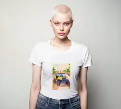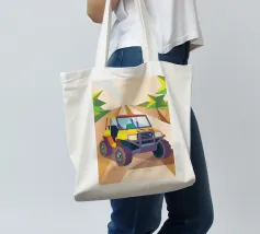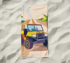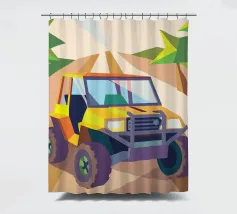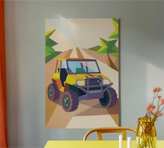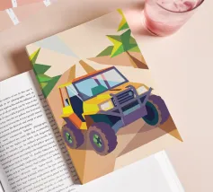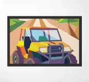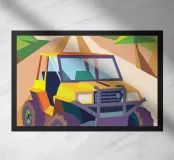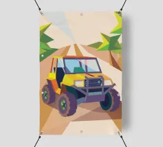 Get an illustration of an off-road vehicle on a dirt road with a modern geometric style.