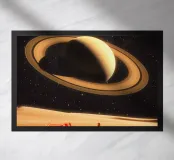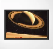 A retro-futuristic collage by Taudalpoi depicting a couple having a romantic date in the desert dunes with Saturn and the starts behind them.