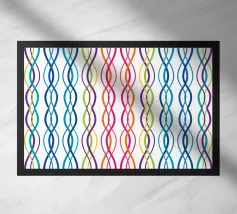 This digital colorful parallel lines artwork is a visually striking piece that showcases the use of precise lines . The artist (kathrinmay) uses different lengths of lines to create a sense of dimensionality, while the use colors creates balance.