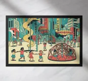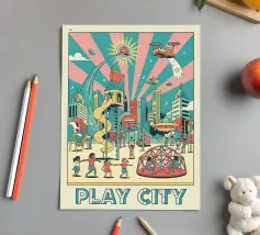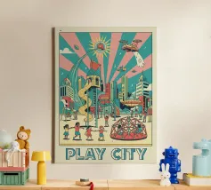 For children's bedrooms, illustrated and drawn poster depicting the playground.
