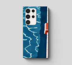 The picture shows a section of a swimming pool with clear, shimmering blue water that creates fascinating light reflections on the surface. On the right-hand edge of the picture is a red starting block, framed by clean, light-coloured tiles at the edge of the pool. Overall, the scene appears calm and aesthetic - a combination of structure, colour and movement captured in a single moment.