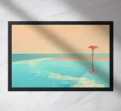 This captivating artwork captures a peaceful moment by the pool, where a lone figure holds an umbrella against the backdrop of a stunning sunset. The soft hues of the sky, combined with the calm, reflective waters, evoke feelings of serenity and introspection. Perfect for modern spaces, this piece will bring tranquility and subtle elegance to your home decor. Its minimalist approach to color and composition invites a sense of calm, making it an ideal addition to any contemporary space.