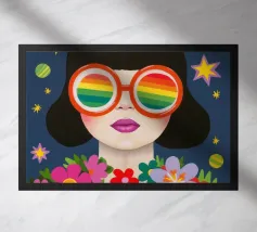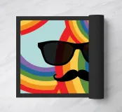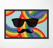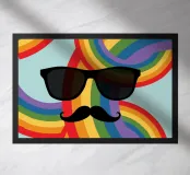 This poster features a bold, playful design with black sunglasses and a classic mustache against vibrant, swirling rainbows. Its retro, Pop Art aesthetic makes it a powerful statement piece full of color and fun. It's the perfect decoration to add a dose of personality and joy to a game room, bar area, or teenage bedroom.