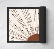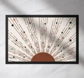 This stylish design combines radiating lines and subtle dots in earthy colours such as brown, green and black, which emanate from a central shape. The minimalist aesthetic gives the motif a modern and harmonious look. Perfect for wall murals, mugs, cushions or mobile phone covers, this design adds an artistic and timeless atmosphere to any room. Ideal for lovers of boho style and modern, creative interior design ideas - also an inspiring gift idea.