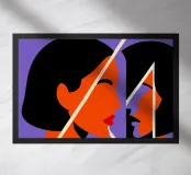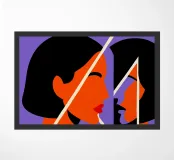 Two faces - or just one? This modern work of art shows a woman in front of a splintered mirror in which her own reflection appears broken and reassembled. With clear areas of colour, strong purple, orange and black, the picture is a statement about identity, self-perception and inner conflicts. Ideal for modern rooms with depth.