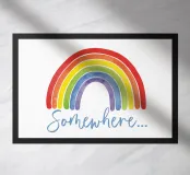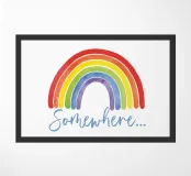 Rainbow, colourful, lettering "Somewhere..." Hand painted with watercolour