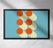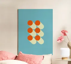 This modern, minimalist design combines clear geometric shapes in red, cream and blue and is reminiscent of timeless retro aesthetics. The playful contrasts and long shadows add depth and dynamism, ideal for lovers of abstract and modern art. Perfect for products such as wall murals, mobile phone covers, mugs or T-shirts to add a touch of elegance and creativity to your everyday life.