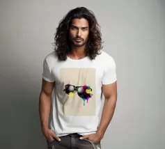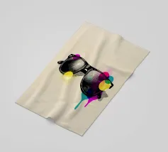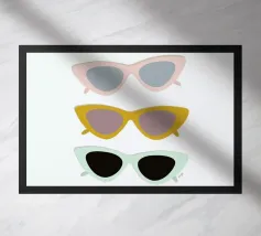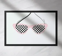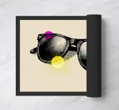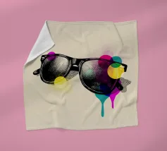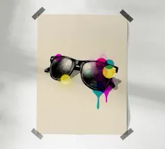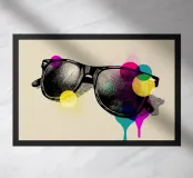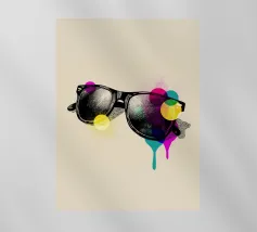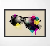 A vintage-style drawing of sunglasses enhanced with bright, dripping color spots. A bold and quirky statement piece for lovers of retro fashion and pop art flair.