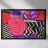A dynamic abstract composition features bold, rhythmic shapes, spirals, and patterns in a vibrant palette of reds, pinks, blues, and black, creating an energetic and visually stimulating piece.