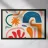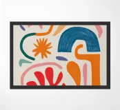 This abstract composition is a playful dance of organic and geometric shapes, clearly inspired by the cut outs of Maraoui. The rhythmic arrangement of forms in a palette of orange, blue, pink, and beige creates a sense of joyful, harmonious movement.