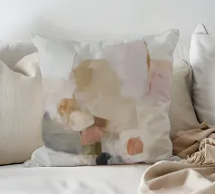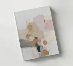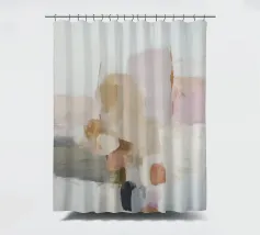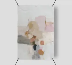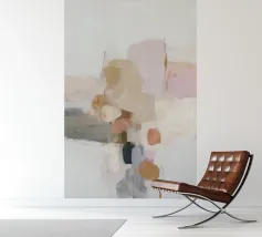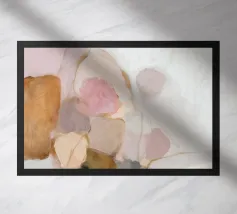 Diese abstrakte Natur Illustration vereint sanfte Farben in Hellrosa, beige und hellgrau mit organischen Farbfelder Formen und feinen Details. Die Kombination aus Pinselstrichen und gedämpften Tönen schafft eine verträumte, skurrile Szene, die perfekt für moderne Einrichtung ist.
