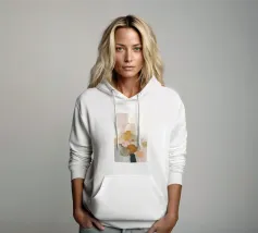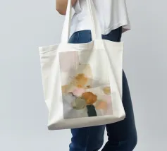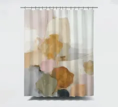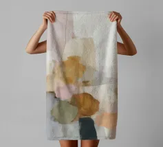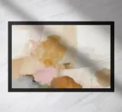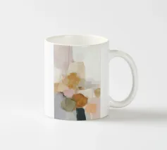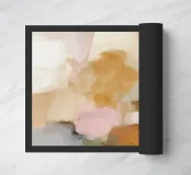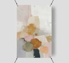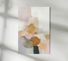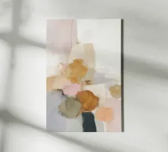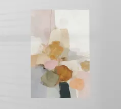 This abstract nature illustration combines soft colours in light pink, beige and light grey with organic colour fields, shapes and fine details. The combination of brushstrokes and muted tones creates a dreamy, whimsical scene that is perfect for modern interiors.
