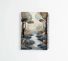 This serene landscape painting captures the tranquility of a winding stream flowing through a misty forest. The soft, muted tones of the trees and rocks create a peaceful atmosphere, while the delicate details of the foliage and the flowing water add a touch of realism. This piece is perfect for adding a touch of nature to any room in your home.