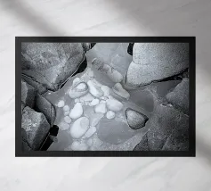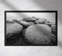 An elegant black and white photograph shows the fascinating grain and texture of marble and rocks. The maritime cliffs radiate a timeless beauty and capture the power of nature in abstract form.
