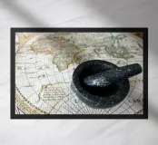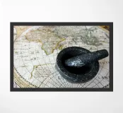 The Spice Route. An ancient map of the then known world dating back to around 1500, showing the continents for the spice trade.