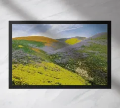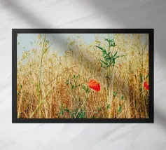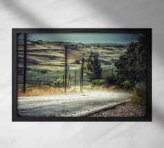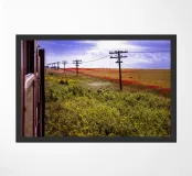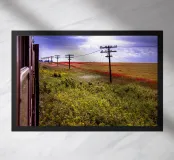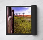 A candid springtime capture taken from a moving train, revealing a Romanian countryside bursting into bloom. Poppies, yellow wildflowers, and a sunlit sky meet power lines and motion blur, blending nature’s renewal with the pulse of modern life. This fine art print speaks of travel, freedom, and fleeting beauty—ideal for eclectic interiors or as a bedroom wall accent with a sense of story.