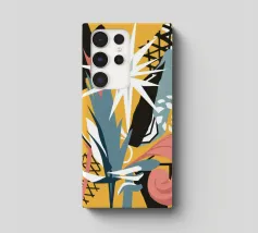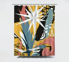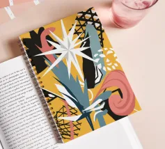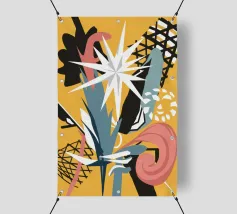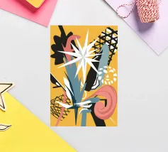 An energetic abstract collage combines a bold star shape with colorful scribbles and patterns, creating a playful, imaginative, and celestial-themed piece of art.