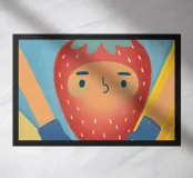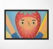 A charming illustration of a person wearing a strawberry costume with a cute expression.