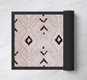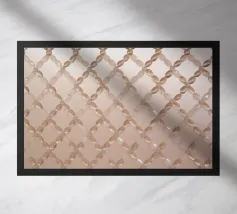 This elegant, oriental woven illustration combines modern and vintage elements with symmetrical diamond patterns in soft pastel and cream colours, perfect for a boho style.