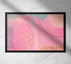 In a colourful mix of light green, pink and orange, this trendy summer poster shines with creative patterns and cool prints that instantly put you in a good mood. The pink and orange abstract dot art gives the boho-chic design a cheerful touch and invites you to enjoy the summer to the full!
