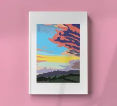 Late August evening. In the blue sky, the clouds dyed by the setting sun spread dynamically over the mountains in the distance. I immediately thought of drawing it on my iPad, but I had just returned from a trip and my pen battery was dead. If I wait it to be charged, the shape of the cloud would change. So I drew it with my finger.