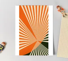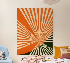 Immerse yourself into the glowing aura of the Sunbeams design. This stunning piece captures the aesthetics of a Japanese garden at sunrise in a retro-style interpretation. Magnificently designed, it features a cascade of sunbeams breaking through a cluster of orange ethereal clouds, the inspiration drawn from the timeless charm of the Japanese sunsets. The sunbeams dance towards the ground, creating a breathtaking abstract presentation that's both stirring and calming. The design intermixes shades from a rich color palette, bringing warmth and vibrance to your environment. Its colorful hues