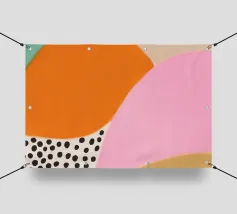 In einem bunten Farbenmix aus hellblau, pink und orange strahlt das trendige Sommer-Poster mit kreativen Mustern und coolen Prints, die sofort gute Laune verbreiten. Die pinke-orange abstrakte Kunst verleiht dem Boho-Chic-Design eine fröhliche Note und lädt dazu ein, den Sommer in vollen Zügen zu genießen!