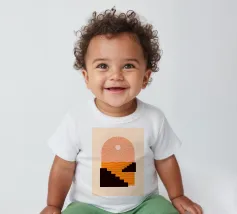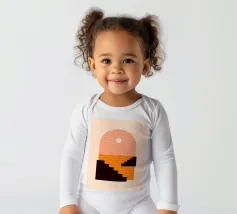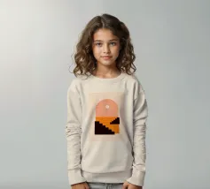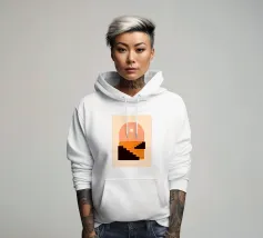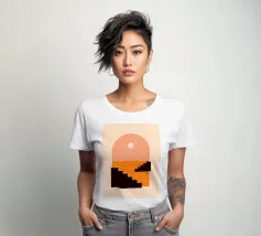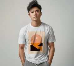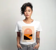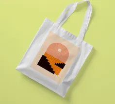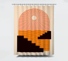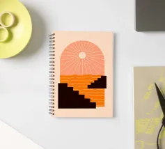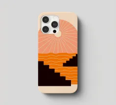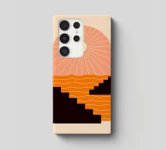 A minimalist composition combining bold stair-like shapes with a radiant sun, opening a window to an abstract orange sea. This artwork balances calm and energy, making it a striking accent piece for any modern living space.