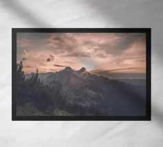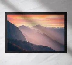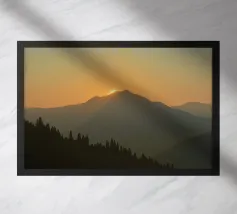 The peaks stand in dark silhouette against the colorful light, their rugged outlines sharp and majestic. Soft rays spill over the ridges, casting long shadows across the valleys below. The air grows cooler and still, and everything feels peaceful as day turns into night. It’s a moment of quiet beauty, when the mountains and sky seem to meet in a final burst of color.