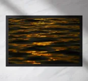 As the golden sun slowly sinks toward the horizon, it bathes the waves in warm hues of orange, pink, and purple. The shimmering light dances across the water’s surface, creating a path of liquid gold that seems to lead straight into the sky. Soft, salty breezes carry the scent of the sea, while gentle waves lap against the shore in a calming rhythm.