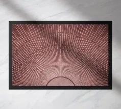 Captivating abstract design featuring radiant light rays in light brown extending outward from a central point, creating a sense of warmth and energy against a beige background.