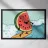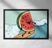 A slice of watermelon surfing a wave