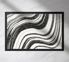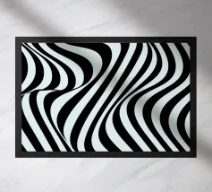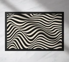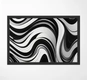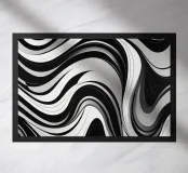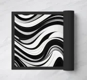 The composition features flowing black and white patterns with soft curves that evoke a sense of rhythm and fluidity, enhancing the visual experience with its dynamic appeal.