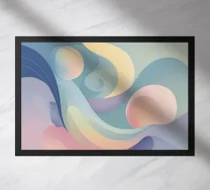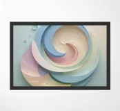 Intricate spiral shapes in soft pastels blend harmoniously, giving the illusion of flowing motion against a pale backdrop. The design captivates with its gentle curves.