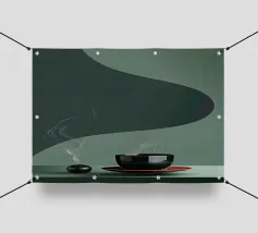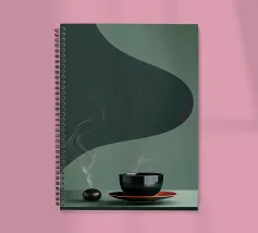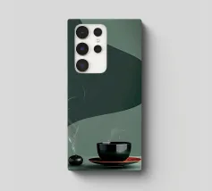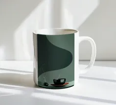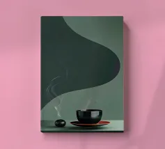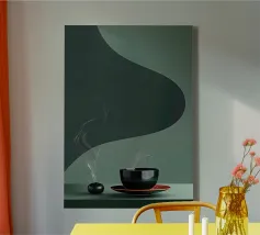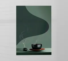 teacup saucer incense smoke green curved-shape geometric-pattern minimalist red ceramic-cup interior-design calm elegance serenity teatime contrast flowing-lines zen tranquility aroma