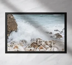 In a black and white image, the spectacle of the spray takes on a special expressiveness. The strong contrasts between the white spray and the dark rocks create a dramatic scene full of intensity. The effects of light and shadow on the drops of water reveal the movements and dynamics of the sea in a very unique aesthetic. The artistic reduction to black and white reinforces the impression of the drama, power and mysticism of the natural spectacle. ✨ A real eye-catcher as a print, fashion or decoration.