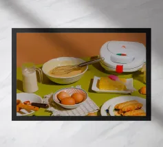 Design sans titre1.jpg): A sun-drenched, rustic still life capturing the joyful chaos of creating the perfect breakfast. Featuring fresh batter, farm eggs, and a waffle iron ready to transform simple ingredients into golden delight. Waffles, Pancakes, Mini Waffles, Breakfast, Brunch, Batter, Eggs, Milk, Butter, Homemade, Comfort Food, Sweet Treat, Waffle Maker, Kitchen, Still Life, Cooking Prep, Food Photography, Stack, Serving, Fork, Tablecloth, kitchen, Cozy, Warm Tones, Rustic, Aesthetic, Food Art, Golden, Indulgence, Delicious, Home Cooking, Family Meal