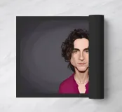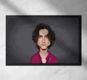 A humorous caricature illustration of the well-known American actor; Timothee Chalamet. One of a series of caricatures achieved for the Celebrity Sunday series, where a famous person is rendered within a day. The idea is to show them as if in a passport photo to have consistency.