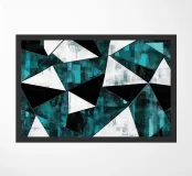 Digital art with an abstract triangular pattern in turquoise and white. Black accents provide contrast, while a subtle grunge texture adds depth and character to the geometric design.