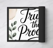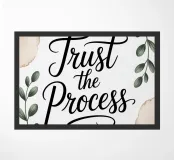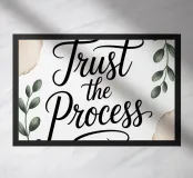 A quiet reminder to move forward with faith. This minimalist botanical print features the powerful phrase “Trust the Process” in elegant script, surrounded by soft watercolor leaves. A calming addition to any mindful space.