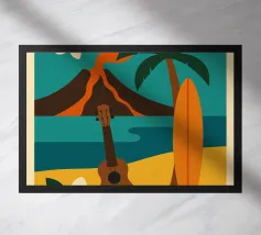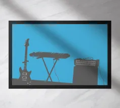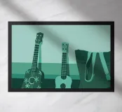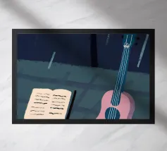 A unique and captivating artistic style. Two guitars depicted in beautiful detail,