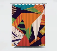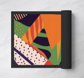 A dynamic and vibrant collage of different abstract patterns and textures, featuring stripes, speckles, and solid color blocks in a rich palette, creating an energetic and modern artwork.
