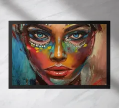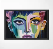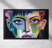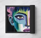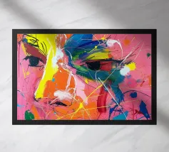 This artwork features a figure with vibrant colors, including purple, pink, and blue. The abstract nature of the painting creates a sense of vivid expression and emotion.