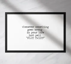 Whenever something goes wrong just yell plot twist! and move on! - Quote minimalist black and white typerwriter typographical quote.
