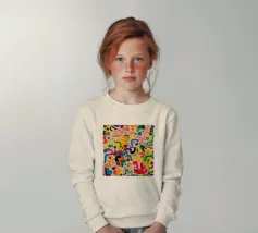 Playful squiggles bounce around a bright field in childlike expressive freedom.