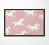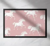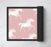 Discover a seamless pattern featuring elegant white horses in motion, set against a soft pink background. Perfect for adding a touch of grace and charm to any design project.